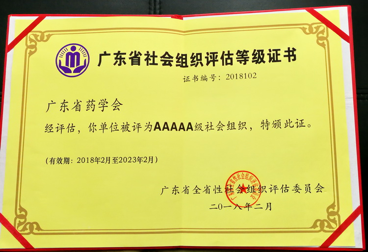 廣東省科學(xué)技術(shù)協(xié)會(huì)發(fā)布“廣東省藥學(xué)會(huì)榮獲廣東省首批5A級(jí)學(xué)術(shù)類社會(huì)組織”:http://gdsta.cn/Item/24805.aspx