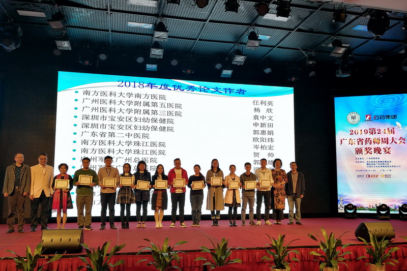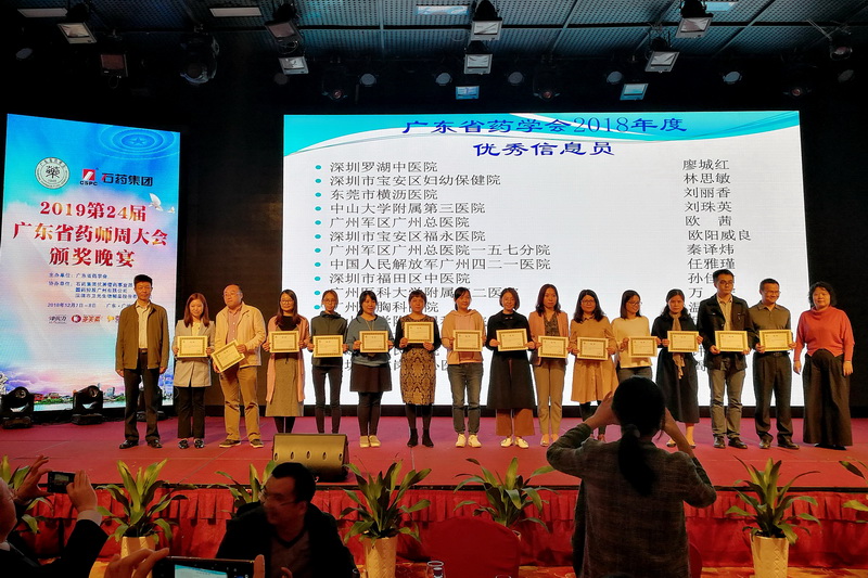 7日晚的頒獎晚會由伍俊妍和黃紅兵2位主任主持。共進行了2018年科研立項、著作和發(fā)表論文前15名醫(yī)院、2018廣東省藥學(xué)會醫(yī)院藥學(xué)科學(xué)技術(shù)獎、2019廣東省藥學(xué)會醫(yī)院藥學(xué)研究基金、2018年度廣東省藥學(xué)會優(yōu)秀信息員和2018年度優(yōu)秀論文共5個項目的表彰頒獎。
