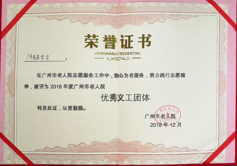 12月9日,在廣州市老人院舉行的2018年度“義工表彰大會(huì)”上,本會(huì)被評(píng)為“優(yōu)秀義工團(tuán)體”。
