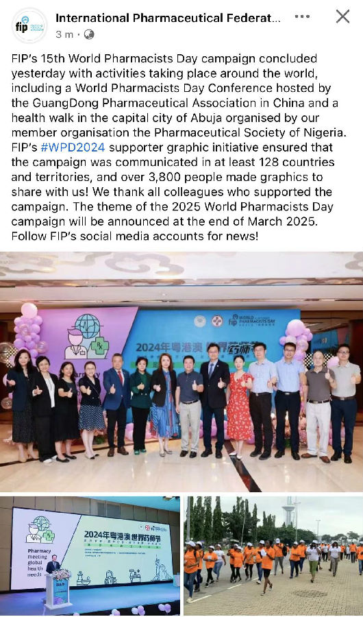 2024年廣東省藥學會世界藥師節(jié)活動在FIP官微頭條報道