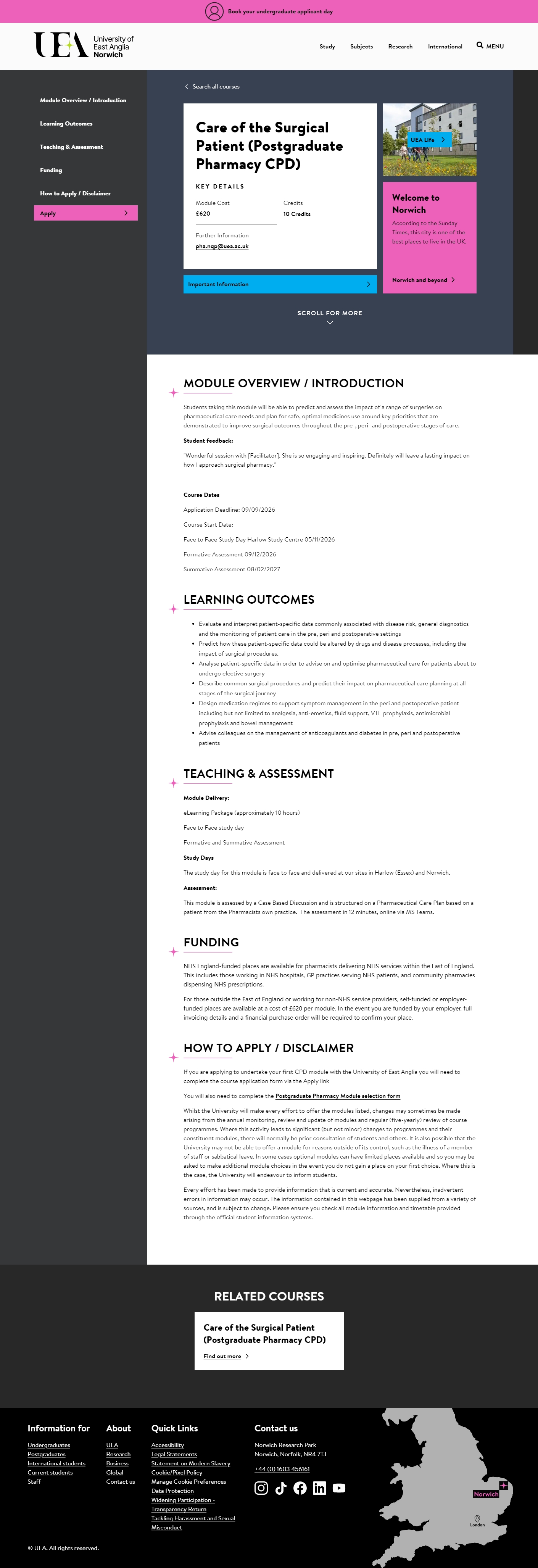 英國(guó)東英吉利大學(xué)開(kāi)設(shè)外科藥學(xué)研究生課程