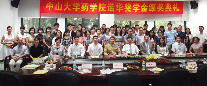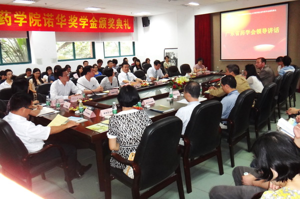 9月18日下午,“中山大學(xué)藥學(xué)院學(xué)生獎學(xué)金——廣東省藥學(xué)會·諾華萌芽項目”在中山大學(xué)大學(xué)城校區(qū)頒獎。中山大學(xué)藥學(xué)院臨床藥學(xué)方向的22位“誠實守信、品學(xué)兼優(yōu)”的學(xué)子榮獲獎勵。中山大學(xué)副校長顏光美教授、中山大學(xué)藥學(xué)院院長黃民教授、省藥學(xué)會副秘書長鄭志華、諾華制藥公司全球商務(wù)經(jīng)理斯蒂芬,南區(qū)經(jīng)理吳明祥等領(lǐng)導(dǎo)出席了頒獎會并做講話;中山大學(xué)所屬附院及省人民醫(yī)院藥學(xué)部主任,獲獎學(xué)生共40多人參加了頒獎典禮。