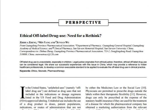 本會(huì)“符合倫理的超說(shuō)明書(shū)用藥應(yīng)被合化法”的觀點(diǎn)在《印度兒科》雜志發(fā)表