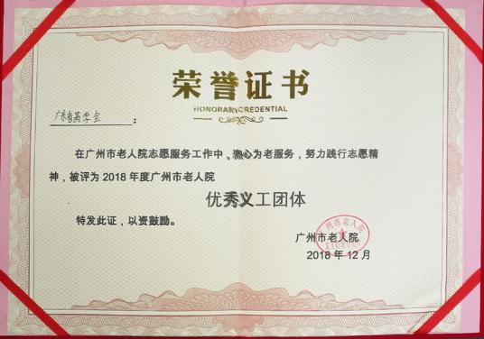 廣東省藥學(xué)會(huì)被廣州市老人院評(píng)為“2018年度優(yōu)秀義工團(tuán)體”