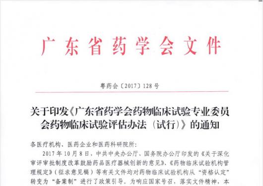 關(guān)于印發(fā)《廣東省藥學(xué)會(huì)藥物臨床試驗(yàn)專業(yè)委員會(huì)藥物臨床試驗(yàn)評(píng)估辦法(試行)》的通知