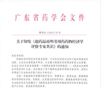 關(guān)于印發(fā)《超藥品說明書用藥藥物經(jīng)濟(jì)學(xué)評(píng)價(jià)專家共識(shí)》的通知
