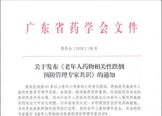 關(guān)于發(fā)布《老年人藥物相關(guān)性跌倒預(yù)防管理專家共識》的通知