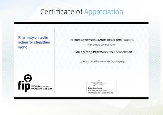國際藥學(xué)聯(lián)合會(huì)(FIP)授予廣東省藥學(xué)會(huì)以及鄭志華、李亦蕾“9?25世界藥師節(jié)”推廣貢獻(xiàn)獎(jiǎng)