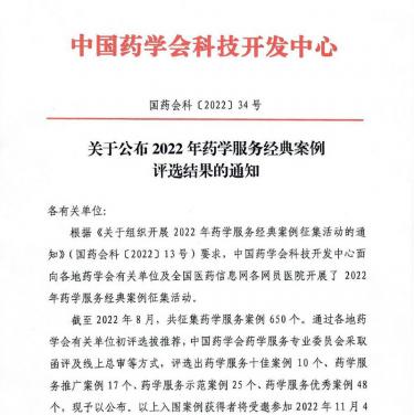 近日,從中國藥學(xué)會科技開發(fā)中心公布的《2022年藥學(xué)服務(wù)經(jīng)典案例評選結(jié)果的通知》中獲悉,廣東省推薦的5個案例全部獲獎,其中榮獲“藥學(xué)服務(wù)推廣案例”2個,“藥學(xué)服務(wù)優(yōu)秀案例”3個。根據(jù)《關(guān)于組織開展2022年藥學(xué)服務(wù)經(jīng)典案例征集活動的通知》要求,中國藥學(xué)會科技開發(fā)中心面向全國開展了2022年藥學(xué)服務(wù)經(jīng)典案例征集活動。...發(fā)布時間:2022-10-10 15:45:02 | 瀏覽:2030