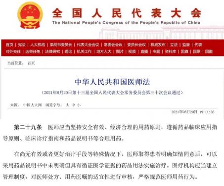 《中華人民共和國醫(yī)師法》(以下簡稱醫(yī)師法)即將于2022年3月1日起正式施行,首次將診療指南和循證醫(yī)學(xué)證據(jù)下的超藥品說明書用藥寫入法條。新醫(yī)師法明確了醫(yī)師在特殊情況下可以采用具有循證醫(yī)學(xué)證據(jù)的超藥品說明書用法的權(quán)利,為醫(yī)師基于循證醫(yī)學(xué)證據(jù)進(jìn)行超說明書用藥提供了法律保障。新醫(yī)師法首次將超說明書用藥寫入法條但新《醫(yī)師法...發(fā)布時(shí)間:2022-02-25 17:04:03 | 瀏覽:6294